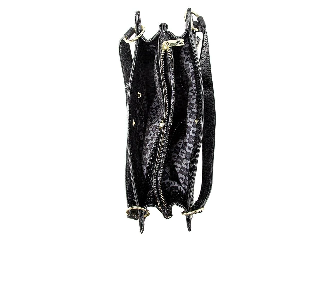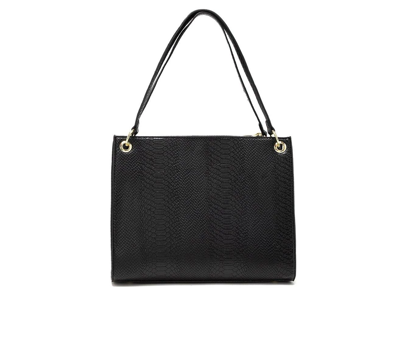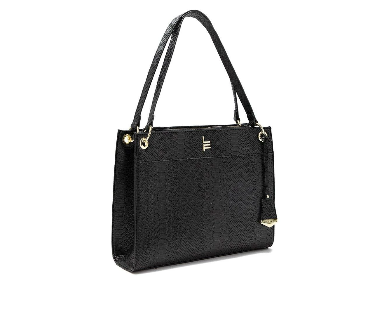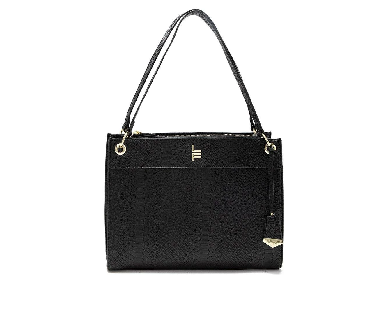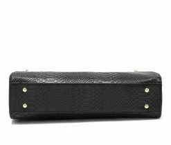 London Fog Brielle Lizard Satchel Handbag Black