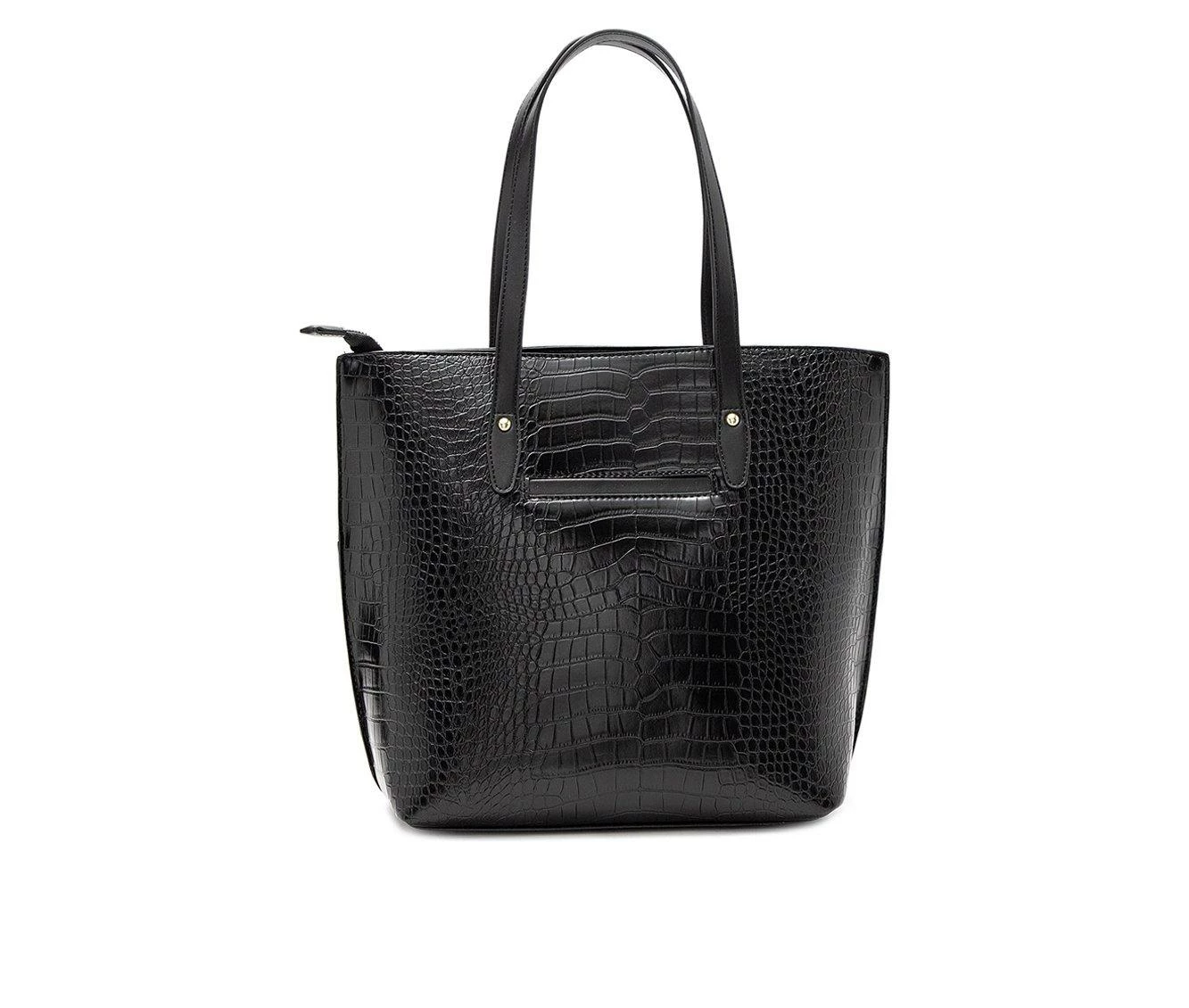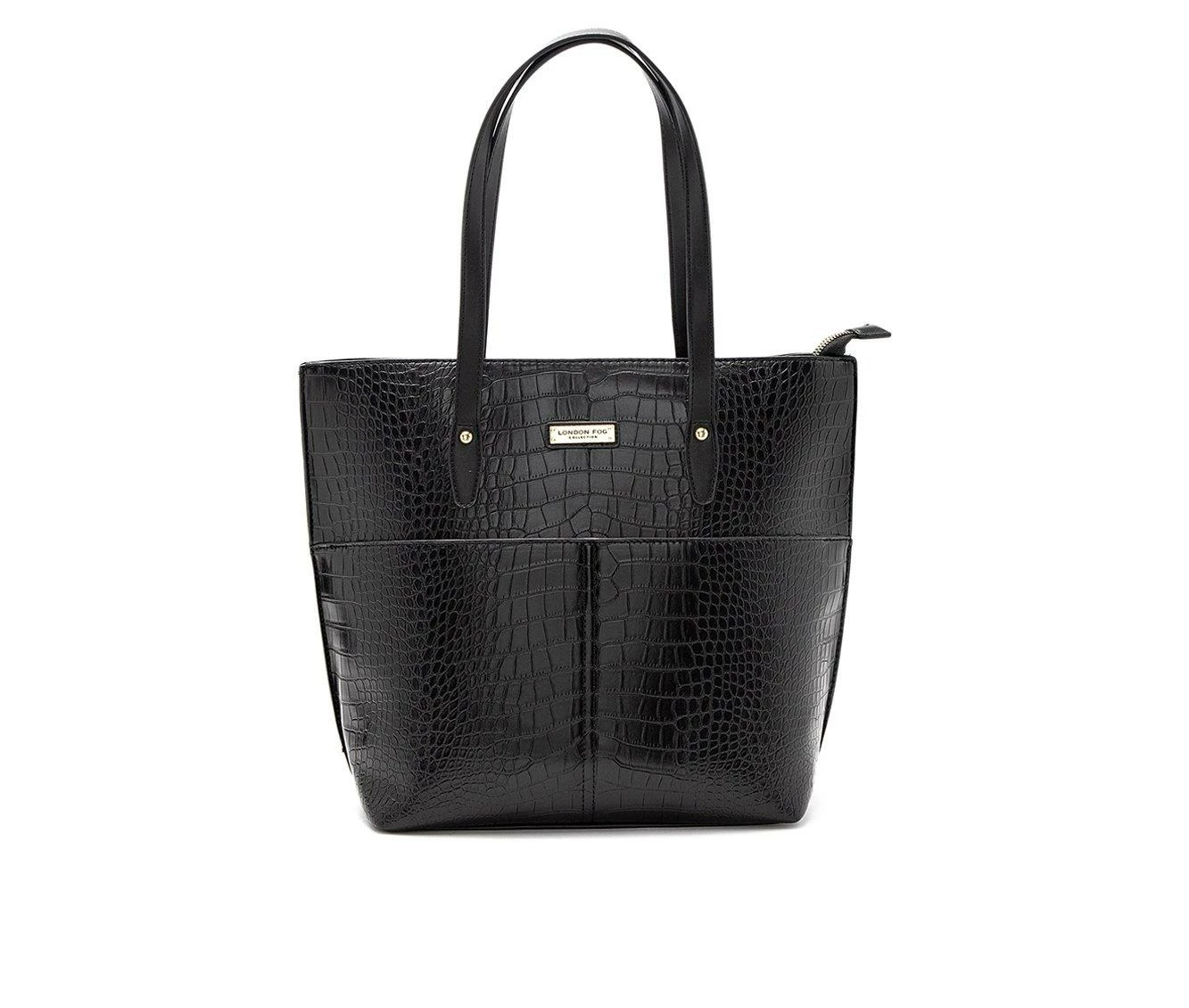 London Fog Maille Croco Tote Handbag Black